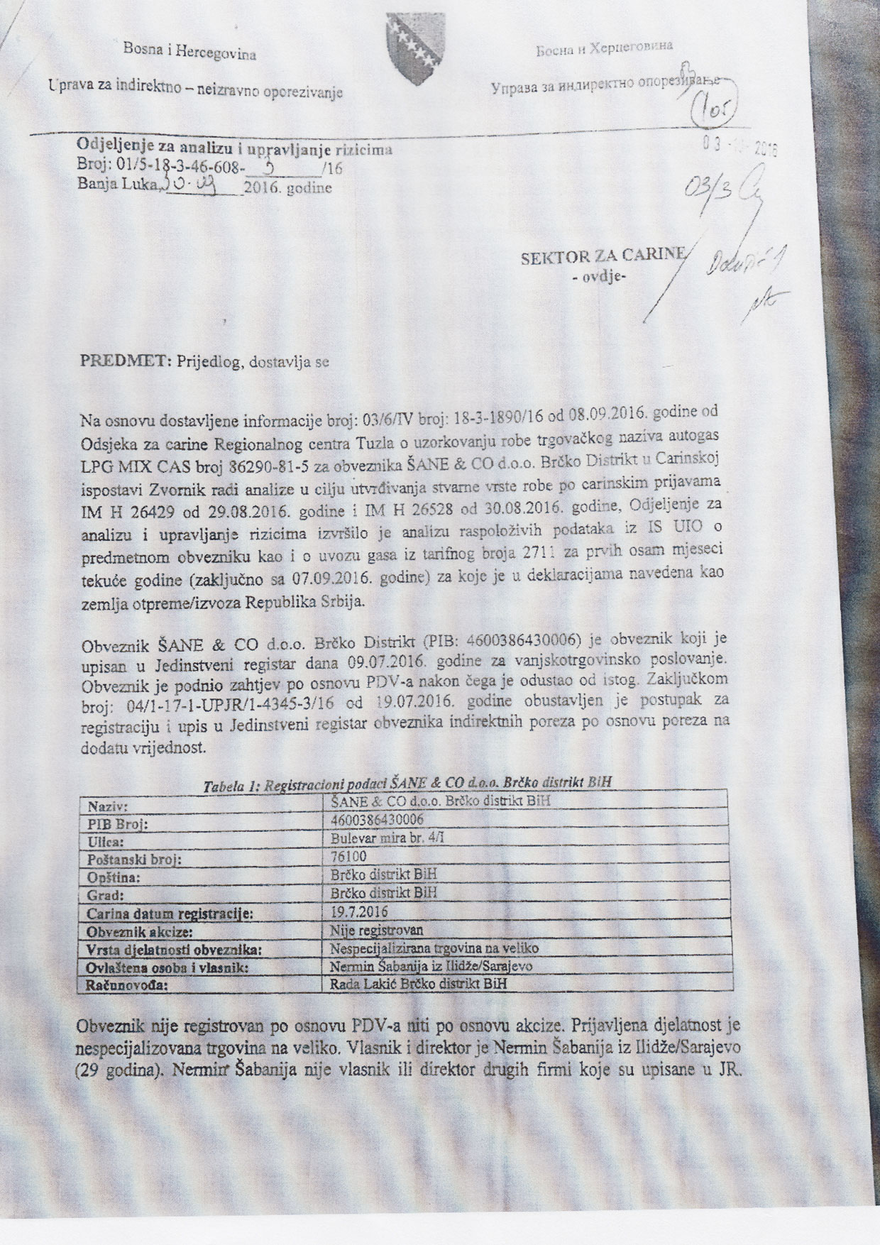 Након синоћ емитованог прилога на БН телевизији о царинским преварама при увозу и извозу плина из БиХ, данас долазимо до нових шокантних података којима потврђујемо да је Управа за индиректно опорезивање БиХ све знала, а ништа није предузимала. Документацијом, која је у посједу БН телевизије, открива се и криминална хоботница из Србије.