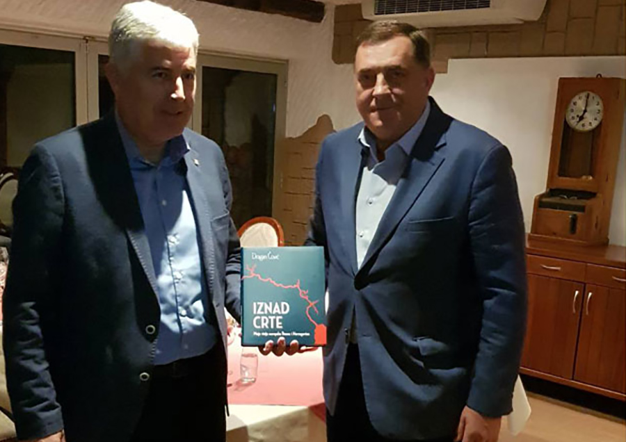 Током вечере Човић је Додику поклонио своју књигу “Изнад црте – Моја визија европске БиХ”.