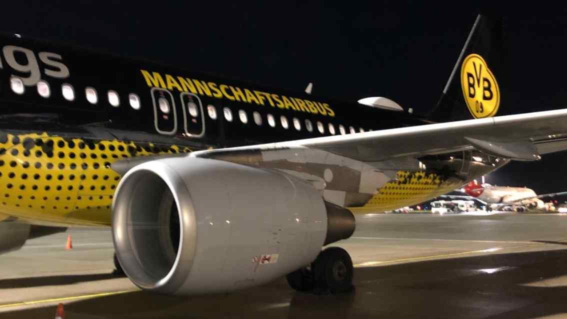 Када су се коначно нашли на "гејту" и изашли на писту, највјернији међу навијачима Шалкеа остали су без текста - чекао их је авион брендиран у бојама највећег ривала, Борусије Дортмунд.