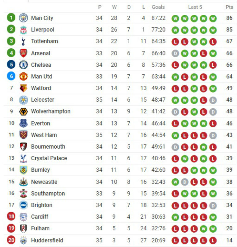 Они сада имају једнак број утакмица као и екипа Ливерпула која је њихов једини такмац у тој трци, али и један бод више од Клоповог тима који ће сутра у Велсу гостовати Кардифу.