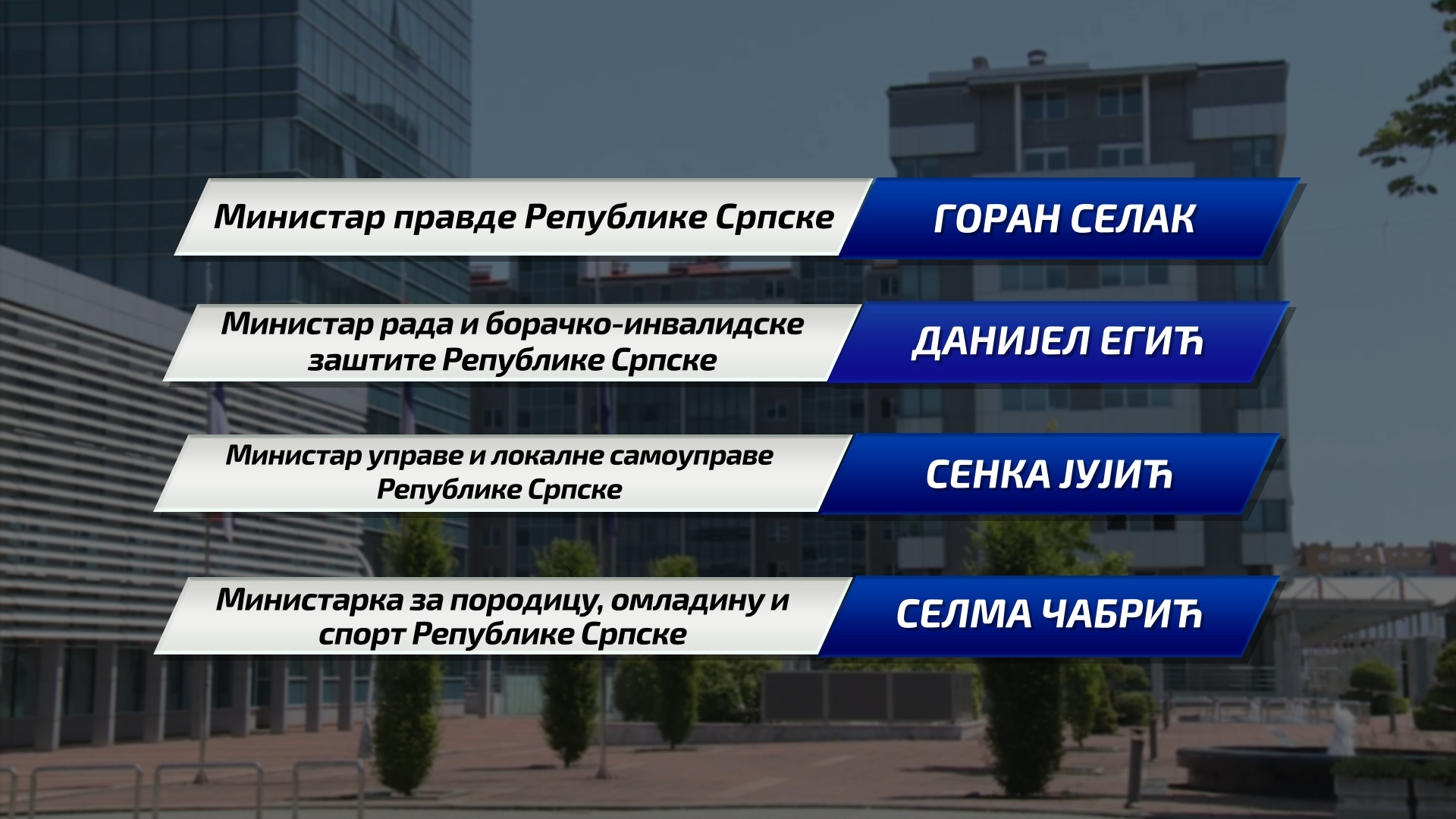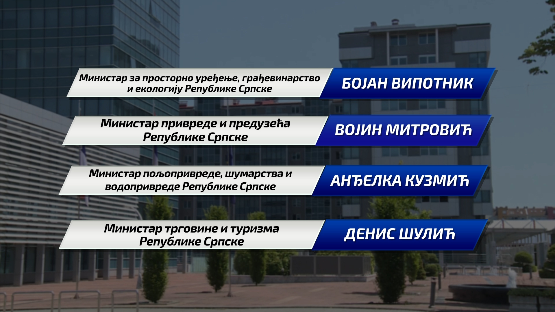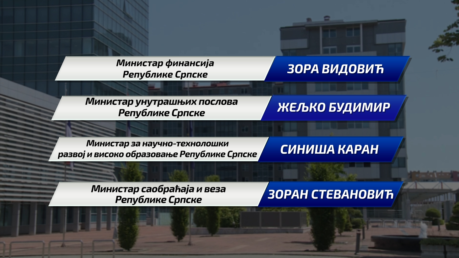 За министре у новој Влади Републике Српске предложена су следећа имена: