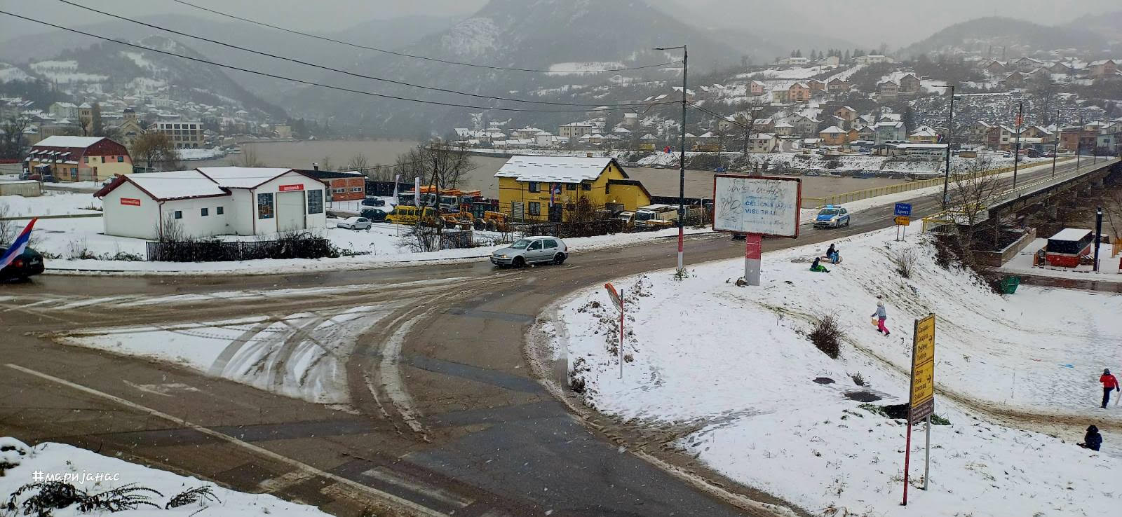 Град Добој је оцисцен у раним јутарњим цасовима, али се због поледице и ниских температура упозорава на опрезност у вожњи.