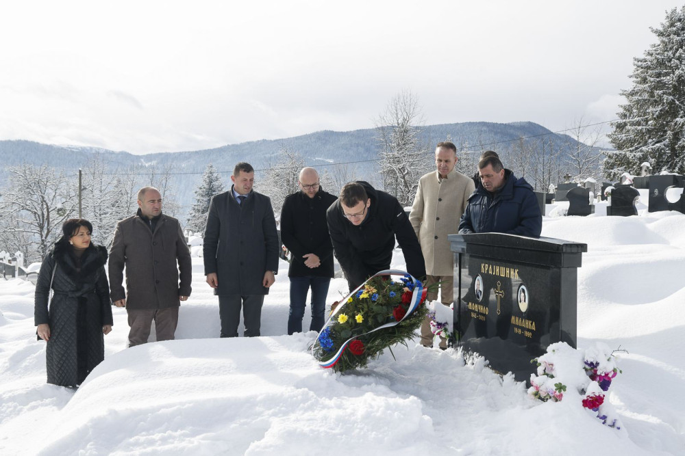 Делегација Источне Илиџе са начелником Маринком Божовићем, након Зејтинлика, вијенце су положили и на гроб првог предсједника Народне скупштине Републике Српске Момчила Крајишника.