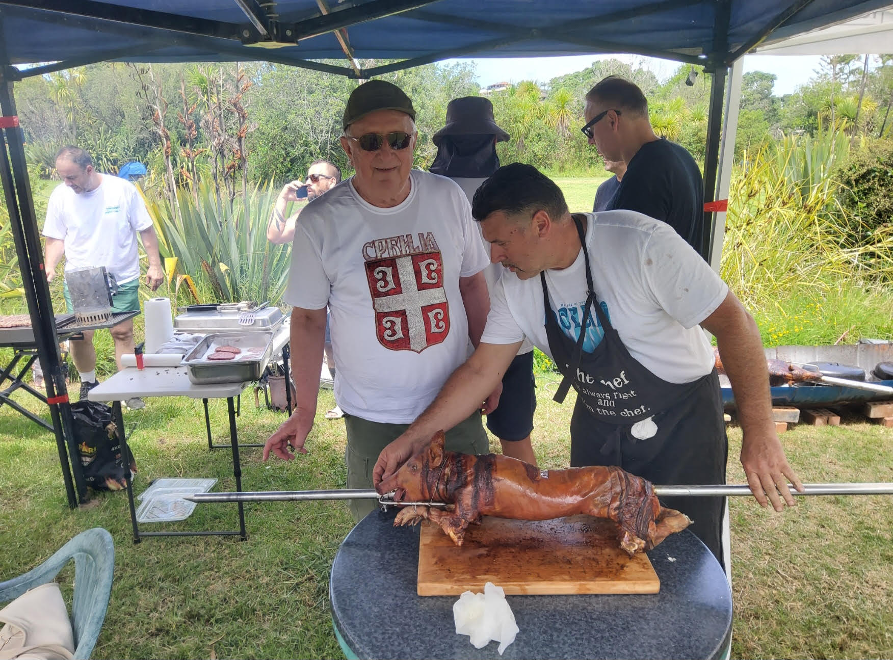 Хране је било у изобиљу и била је добра: јањетина и прасетина са ражња, 30кг ћевапа и исто толико пљескавица, мноштво разноврсних ражњића и један огроман лонац гулаша.
