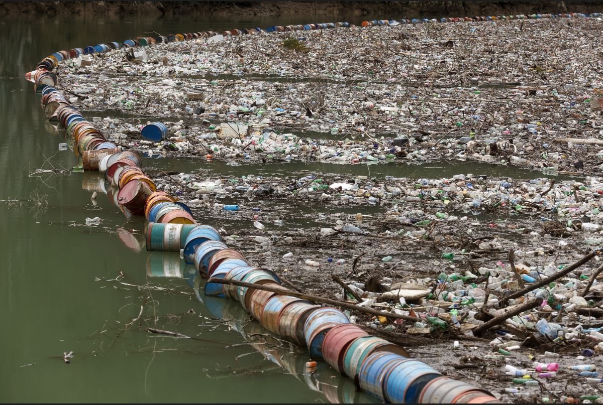 Призор подсећа на сцене из филмова о еколошким катастрофама - смарагднозелена површина реке прекривена је дебелим слојем пластичних флаша, комада дрвета или намештаја, зарђалих буради, кућних апарата, па чак и угинулих животиња.